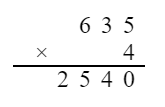 (1) 个位:用4与635个位上的$(\quad)$相乘得$(\quad)$,向十位进$(\quad)$,在积的个位上写$(\quad)$。