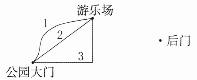 (1)从公园大门到游乐场有3条路,第()条路最近。