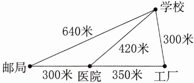 (2)从邮局经过医院到学校最近要走()米。
