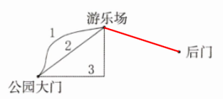 (2)公园准备从游乐场到后门再修一条路,你觉得怎么修最近呢?画一画。