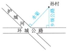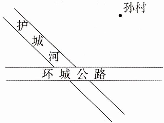 8. 如下图,环城公路和护城河穿插而过,如果要修一条水渠把护城河的水引至孙村灌溉农田,再修一条乡级公路把孙村与环城公路连通起来,怎样修渠、修路最短?画出来,并标明“水渠”“乡级公路”。