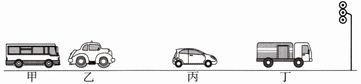 )角,有甲、乙、丙、丁四辆车在同一车道内行驶,当行驶到如图所示的位置时,(丁