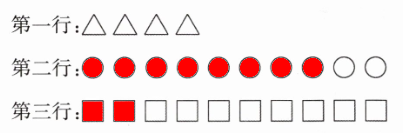 ①给第二行的$○$涂上颜色,使涂色的$○$的个数是$△$的 2 倍。