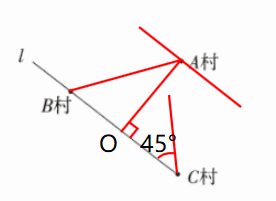 (1)A村要修一条通往国道l的公路,请你画出最短线路,标出交点O。