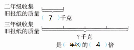 4. 为“节约资源,减少污染”,学校组织学生开展收集旧报纸活动。二年级收集旧报纸7千克,三年级收集旧报纸的质量如下图所示: