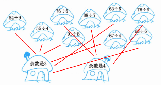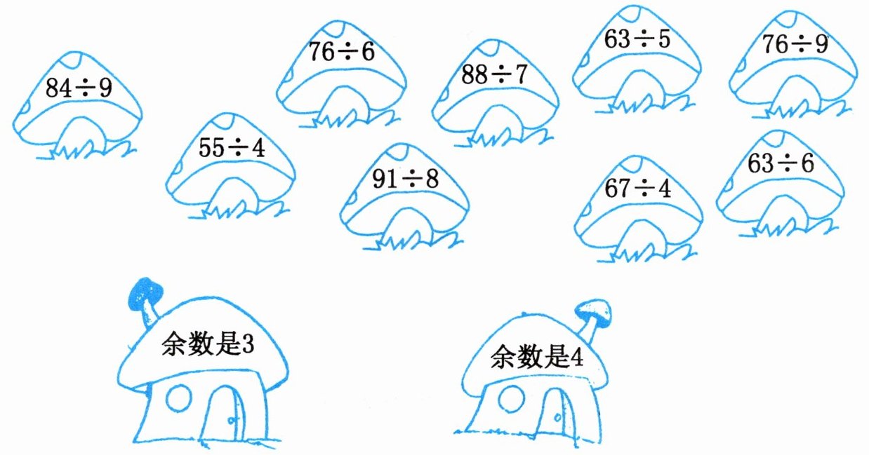 4. 采蘑菇。(连一连)