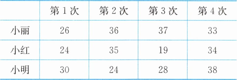 1. 下面是四(1)班3个同学踢毽子情况统计表。(单位:个)