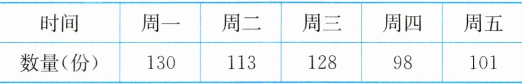2. 张阿姨开了一个售报亭,从周一到周五售出报纸的情况如下表。