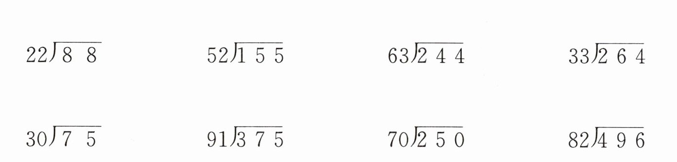 $22\overline{)88}$ $52\overline{)155}$ $63\overline{)244}$ $33\overline{)264}$