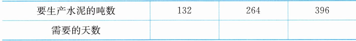 | 要生产水泥的吨数 | 132 | 264 | 396 |