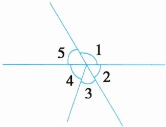 6. 用量角器量出$\angle 1 = ($ )$^{\circ}$,$\angle 3 = ($ )$^{\circ}$,根据这两个度数,计算出$\angle 2$、$\angle 4$和$\angle 5$的度数。(5分)