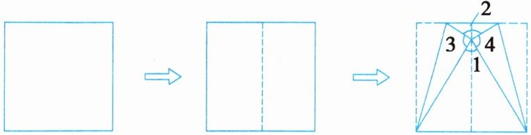 7. 将一张正方形纸对折后,出现一条折痕,将正方形的两个直角顶点折到刚才的折痕上,如图所示。如果形成的角中$\angle 1 = 60^{\circ}$,那么$\angle 2$为多少度?(6分)