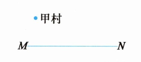 9. 直线 $ MN $ 是一条公路,在路两侧有甲、乙两个村子。现在要在公路上修一个公共汽车站,使这两个村到车站的路线之和最短,则车站应修建在什么地方?(用点 $ C $ 表示出车站的位置)(5 分)
