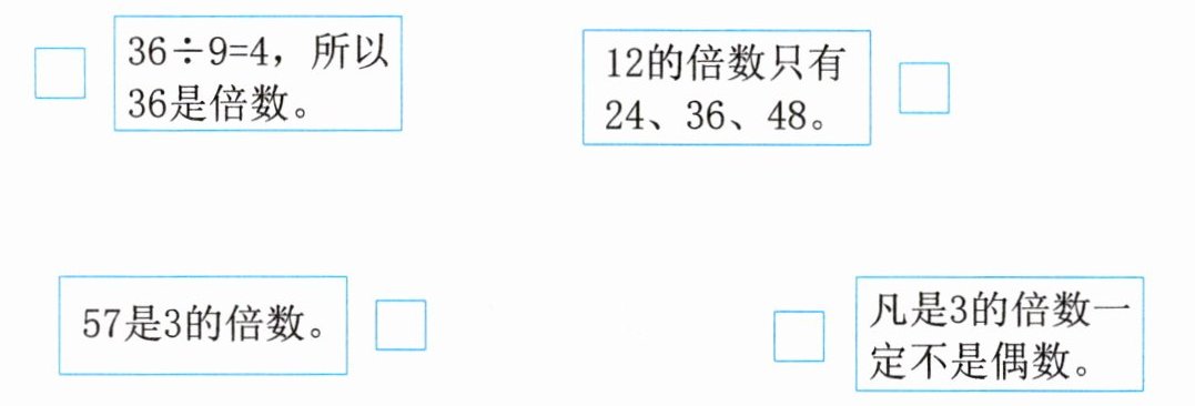 1. 下面各组数是不是倍数关系?是的在后面的括号里画“√”,不是的画“×”。