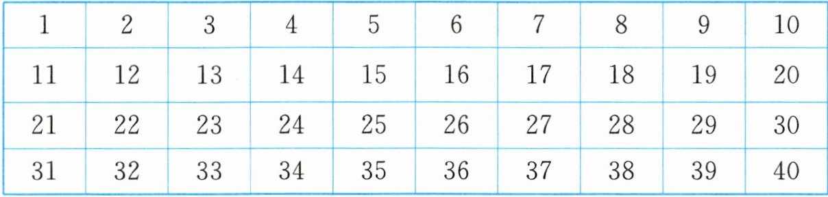 4的倍数:4、8、12、16、20、24、28、32、36、40。