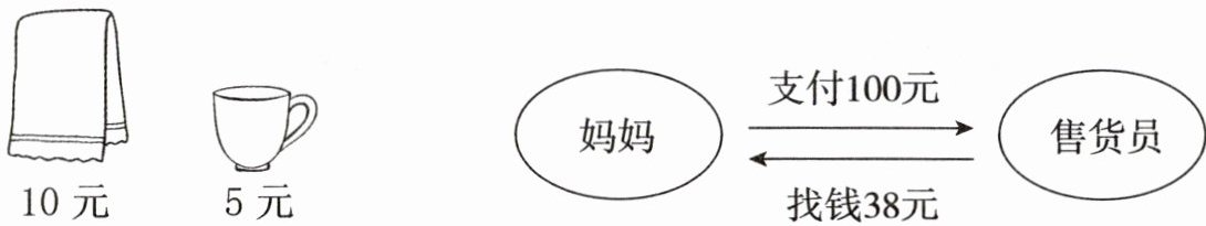 妈妈买了毛巾和杯子,不计算,你能很快帮妈妈判断找回的钱对不对吗?