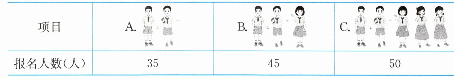 结论:题目未限定每组人数,所有项目的报名人数均为合数,平均分组后均可无剩余。但根据插图中项目A为2人、B为3人、C为5人(推测每组人数对应项目图示人数):