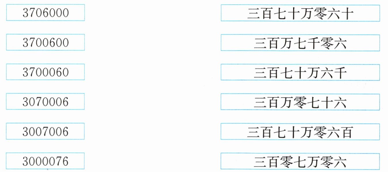 3706000-三百七十万六千;3700600-三百七十万零六百;3700060-三百七十万零六十;3070006-三百零七万零六;3007006-三百万七千零六;3000076-三百万零七十六
