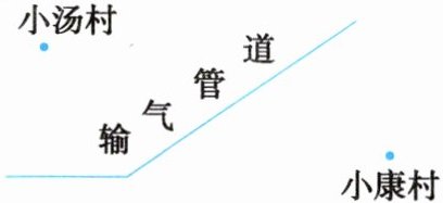 7. 小汤村和小康村分别要铺一条管道与输气管道连接,怎样铺管道最短?请你在图中画出来。