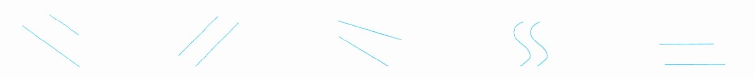 1. 在下图中,哪组是平行线?在图形下面的括号里画“○”。