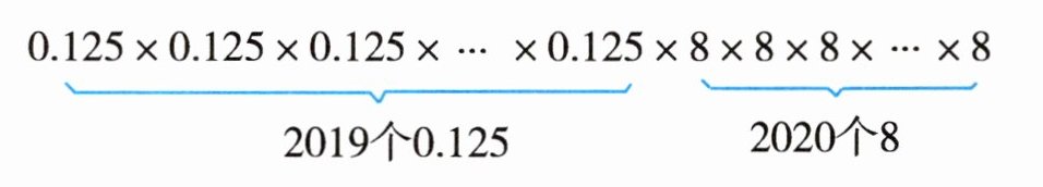 $\underbrace{0.125×0.125×0.125×\cdots×0.125}_{2019个0.125}×\underbrace{8×8×8×\cdots×8}_{2020个8}$
