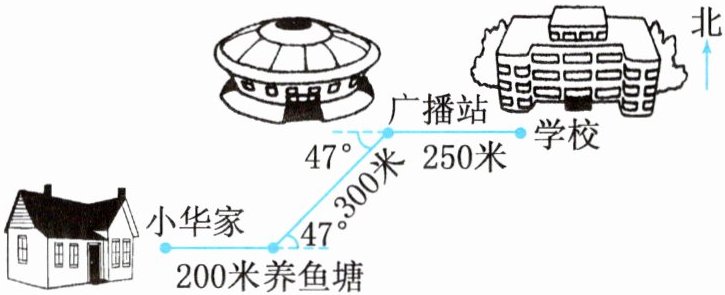 C. 小华家→向东走200米→向北偏东47°方向走300米→向东走250米
