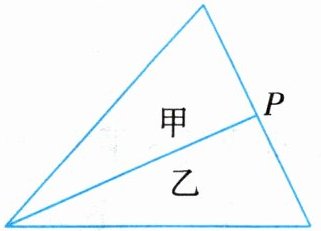(2) 如图,点 $ P $ 为所在边的中点,则三角形甲的面积()三角形乙的面积。