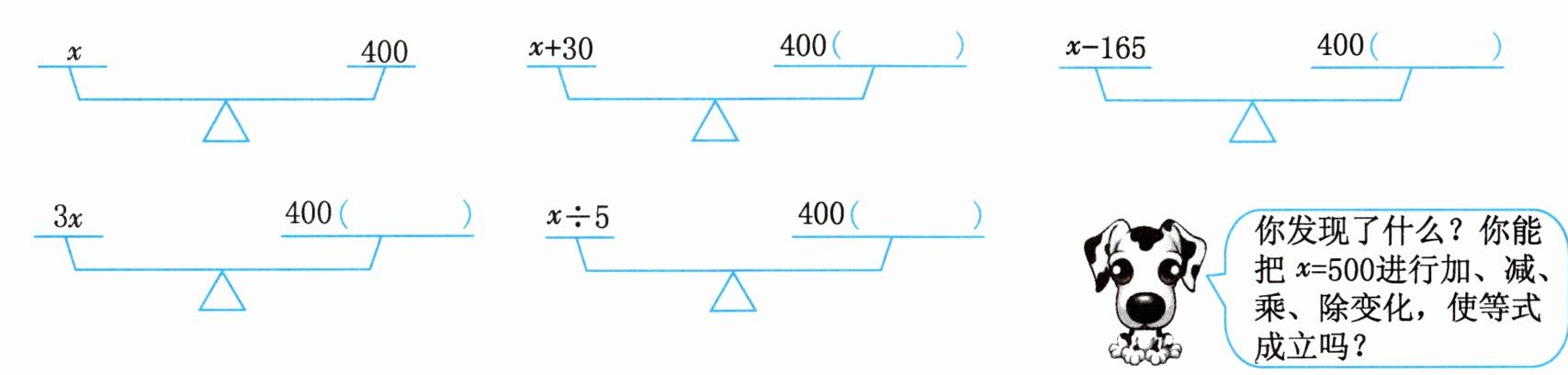 3. 在括号里填上适当的运算符号和数,使天平平衡。