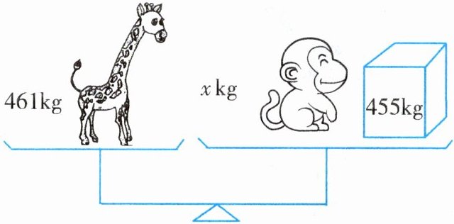 根据天平平衡原理,长颈鹿的体重等于猴子的体重加上正方体的体重,可列方程: