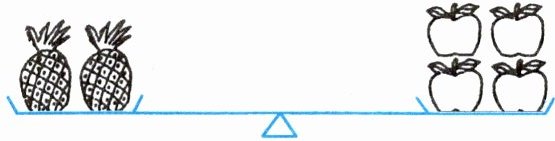 (2)两边分别拿掉1个()和()个苹果,天平还平衡。一个菠萝和()个苹果一样重。