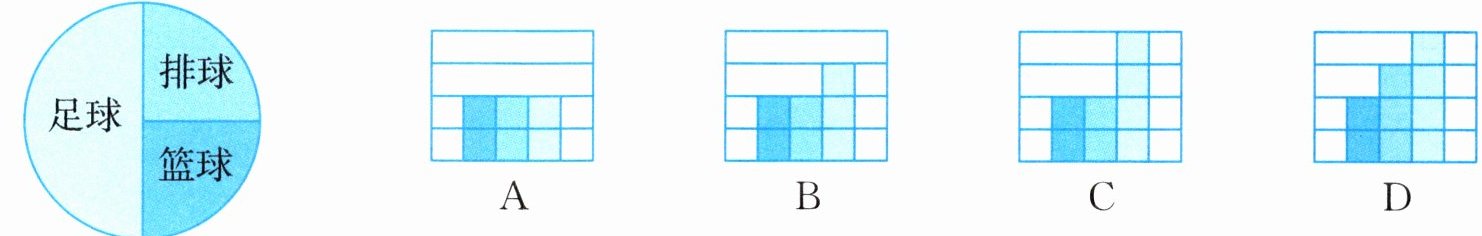 4. 将一项调查数据用扇形统计图表示(如下图),如果改用条形统计图表示,下列()与扇形统计图所表示的是一样的,说明理由。