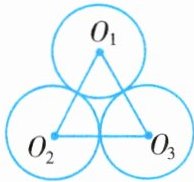 7. 下图是三个半径相等的圆组成的平面图形。依次连接三个圆心的线段所围成的三角形中,任意一个角是多少度?