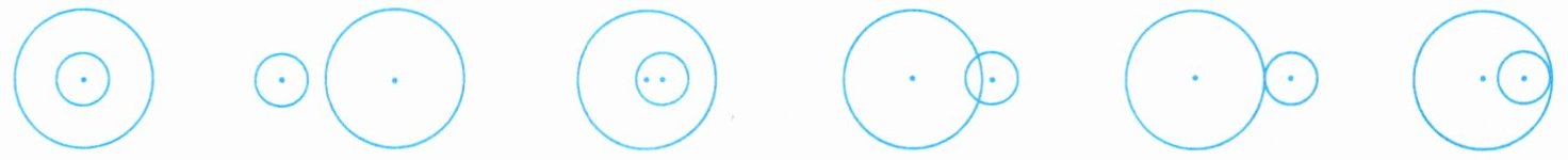(2) 两个大小不同的圆可以组成六种图形,请分别画出它们的对称轴,并说一说它们的对称轴有什么共同点。