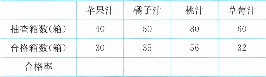草莓汁合格率:$32÷60×100\% \approx 53.3\%$