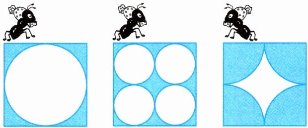 9. 3 只小蚂蚁分别沿着涂色部分的边缘爬一周,哪只小蚂蚁爬过的路程最长?(3 个正方形的边长都为 4 厘米)