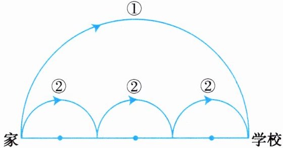 7. 小明和小刚一起从家按相同的速度向学校走去,小明按①号路线走,小刚按②号路线走,小明和小刚哪一个先到学校?为什么?