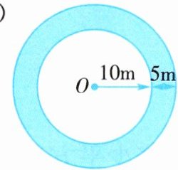 (1)已知内圆半径$r = 10m$,环宽$5m$,则外圆半径$R=10 + 5=15m$。
