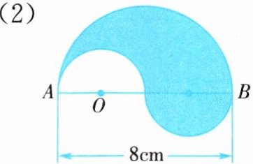 (2)由图可知$AB = 8cm$,则大半圆半径$R=\frac{8}{2}=4cm$,小半圆半径$r=\frac{4}{2}=2cm$。