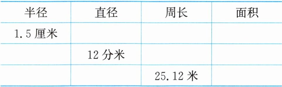 | 1.5厘米 | 3厘米 | 9.42厘米 | 7.065平方厘米 |
