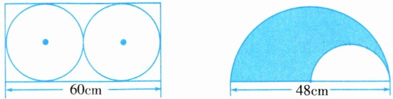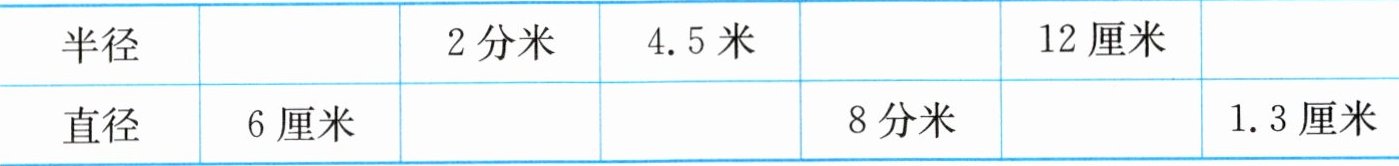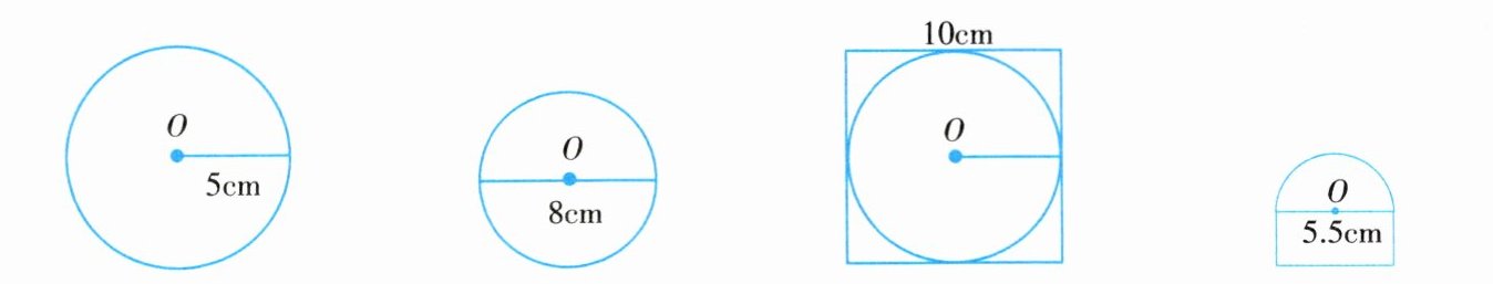 4. 右上图中,大半圆的半径是()厘米,直径是()厘米;小半圆的半径是()厘米,直径是()厘米。