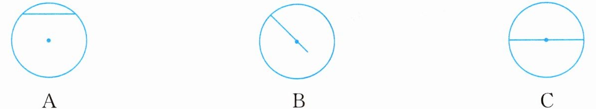 ④过圆心O点画一条直线至圆周,标记为直径AB,并从O点向圆周画一条线段,标记为半径OC。