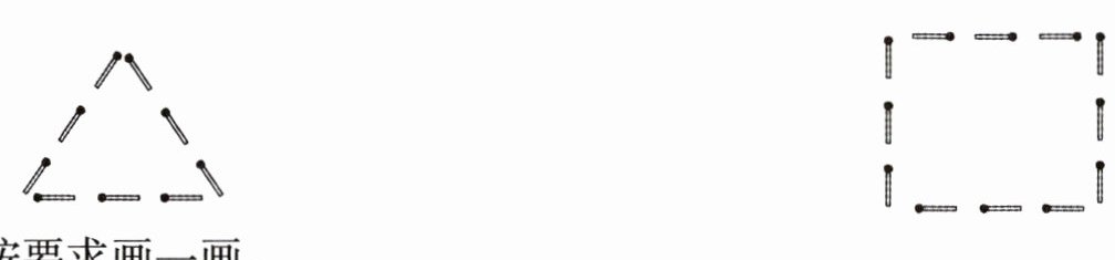 1. 用火柴棒先摆出下面的图形,再将各边长缩小为原来的$\frac{1}{3}$,摆一摆。