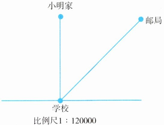 (2) 经测量,学校到邮局的图上距离是2.5厘米。