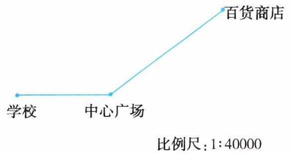7. 某城市中心广场的四周道路和部分单位如下图。媛媛每分钟走50米,从学校到中心广场,再到百货商店,共需要走几分钟?