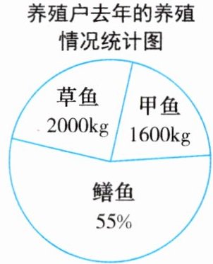 3. 设养殖总数为x kg,45%x = 3600,解得x = 3600 ÷ 0.45 = 8000(kg)