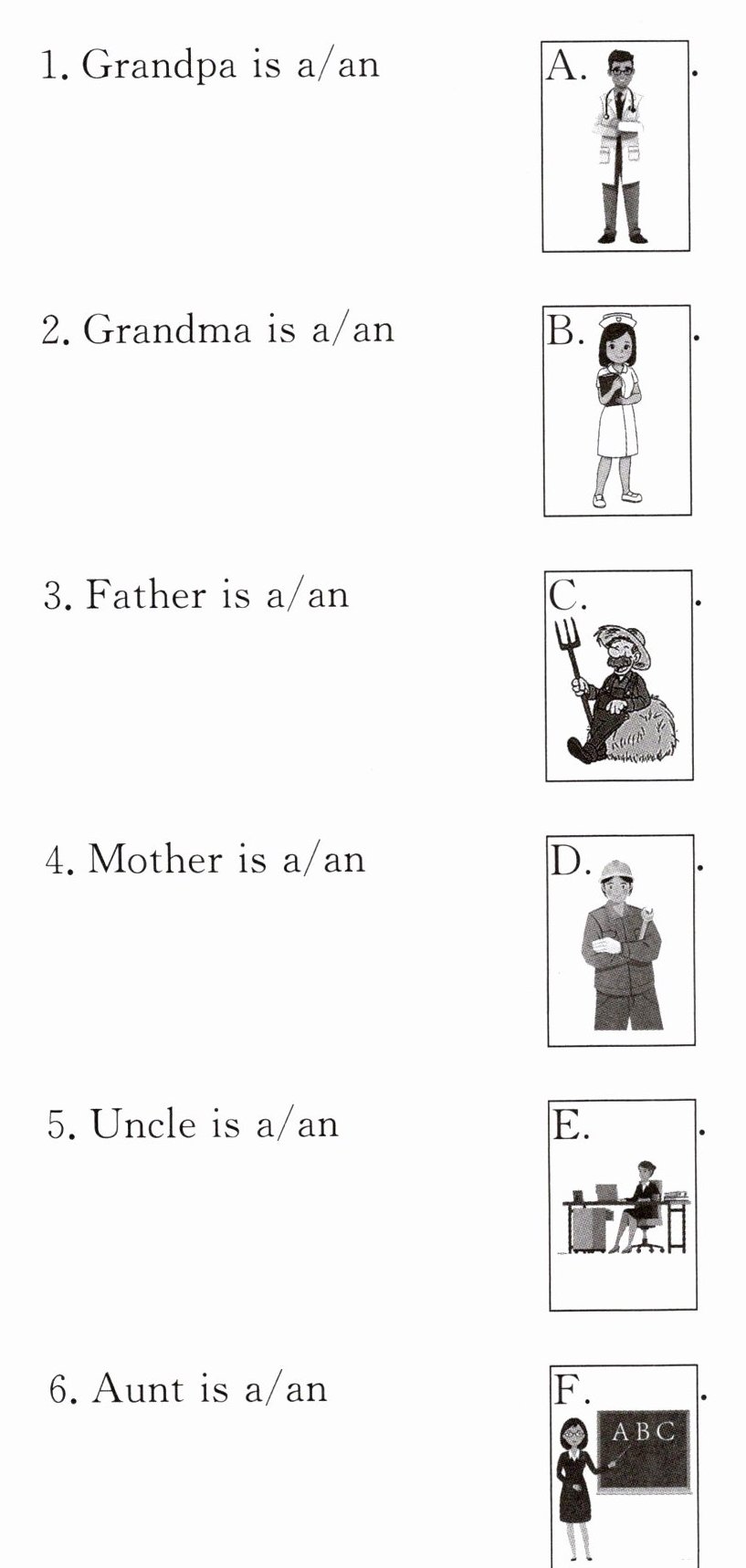 Hello! My name is Tim. I'm a student. I have a big family. My grandpa is a farmer and my grandma is a teacher. My father is a doctor. My mother is an office worker. My uncle is a factory worker. My aunt is a nurse. They are helpful! They are great!