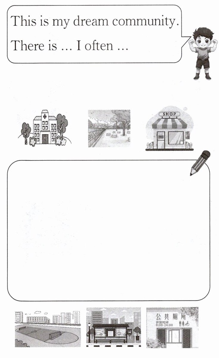 This is my dream community. There is a playground. There is a park. There is a library. I often play football with Binbin on the playground. We often play games in the park. I often read story books with Binbin in the library. We have fun!