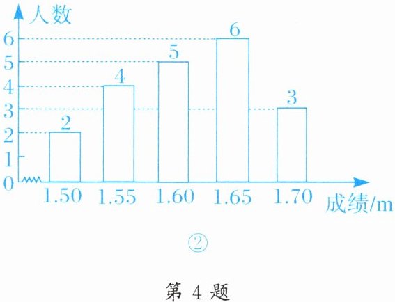 4. 在一次中学生田径运动会上,根据参加男子跳高初赛的运动员的成绩(单位:m),绘制出如下的统计图①和图②,请根据相关信息,解答下列问题: