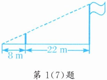 $cm^2$.(7) 如图,为测量学校旗杆的高度,小东用长为$3.2\ m$的竹竿作测量工具. 移动竹竿,使它顶端的影子与旗杆顶端的影子恰好落在地面的同一点,此时,竹竿与这一点相距$8\ m$,与旗杆相距$22\ m$,则旗杆的高为
