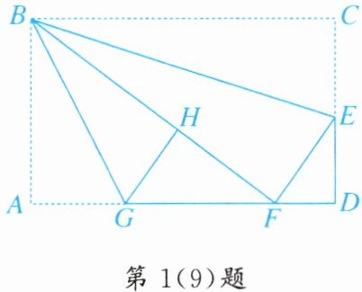 (9) 如图,在矩形纸片$ABCD$中,$AB = 6$,$BC = 10$. 点$E在CD$上,将$\triangle BCE沿BE$折叠,点$C恰好落在边AD上的点F$处;点$G在AF$上,将$\triangle ABG沿BG$折叠,点$A恰好落在线段BF上的点H$处,则下列结论中正确的是